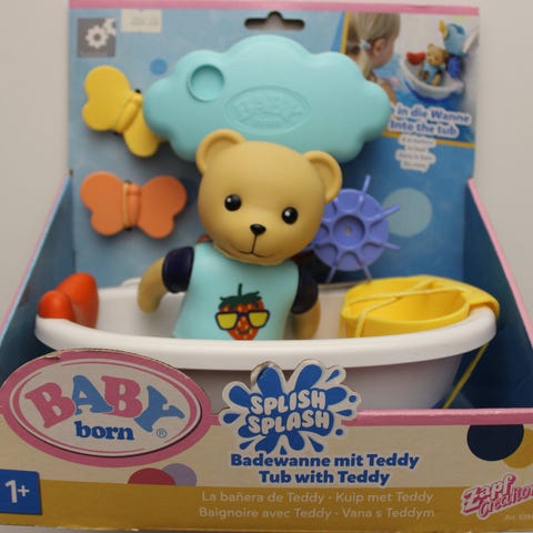 Dette lot består af små badedyr, to runde flydere, termometer og et delfinhoved til at sætte på vandhanen i badekarret, og vandet kommer ud af delfinens mund.