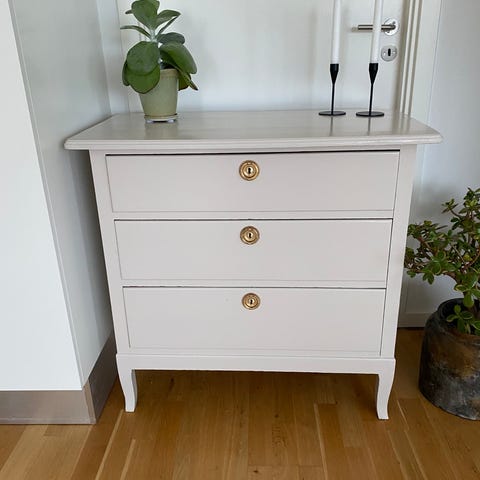Jeg sælger denne kommode, som er malet i sommer i en sart rosa farve. Sælges kun grundet flytning. Det ene greb er faldet af og de andre sidder løst, men der følger greb med og skruer, hvis man har mod på at fikse det. Den har mange smukke detaljer og skufferne virker som de skal, udover de knirker lidt. Skal afhentes i Valby :-)