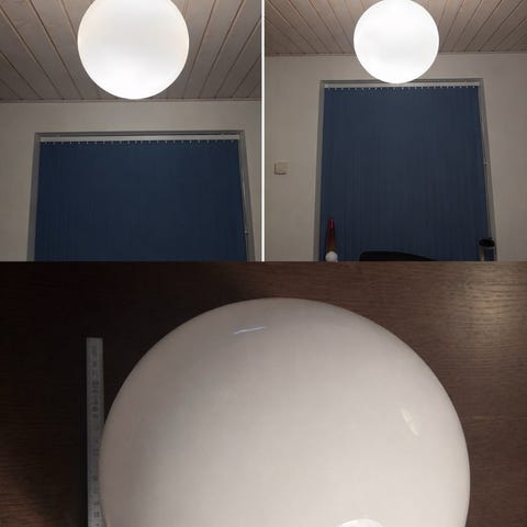 Lille lofts lampe, med hvid glas kuppel ca. 15 cm.