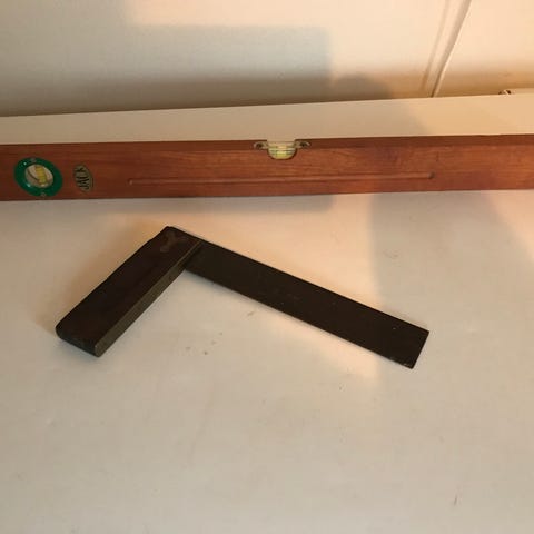Meget fin vatterpas og vinkel med træ og messing håndtag