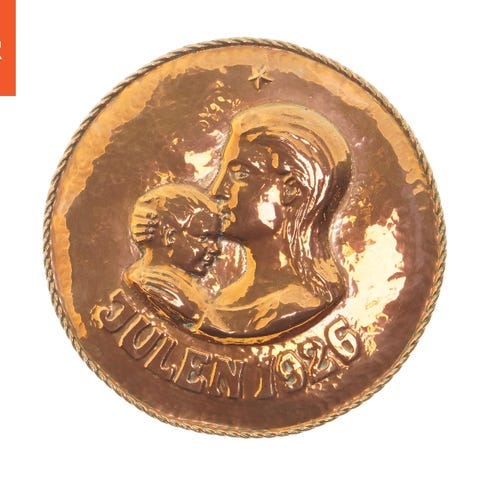 Denne tallerken er lavet af kobber og har en diameter på 29,5 cm. Forsiden viser et præget motiv med teksten 'Julen 1926'. Tallerkenen har en flettet kantdetalje rundt om kanten.