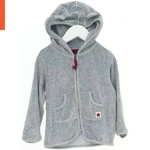 Hættetrøje til børn med en tre-farvet design bestående af lyserød, hvid og grå. Trøjen har en lomme foran og lange ærmer. Der er en hætte øverst for ekstra varme.