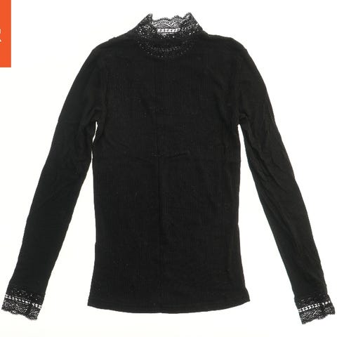 Langærmet bluse i brun farve, lavet af teksturstof. Blusen har en rund halsudskæring med en dekorativ blondekant. Den har et ribbet mønster og er designet til komfort.