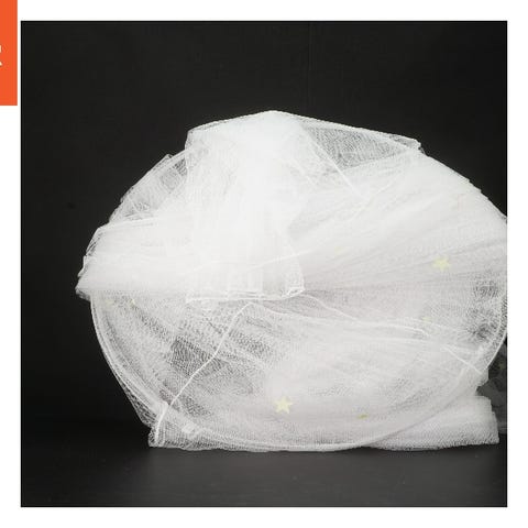 Rundt myggenet med en diameter på 60 cm. Det har et hvidt net med små selvlysende stjerner, der skaber et beskyttende og dekorativt element. Ideelt til at beskytte mod insekter og samtidig tilføje en æstetisk detalje til ethvert rum.