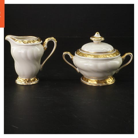 Porcelæns sæt med guldkant fra Edelweiß (str. Ø 6,5x h 7 og ø 4x h 6 og ø8 cm)