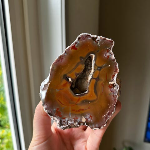 Blå agat geode + et stykke rå kvarts, sælges samlet til 70,-