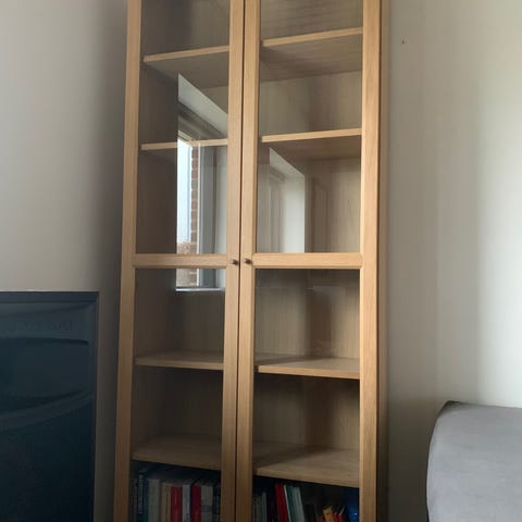 Ældre Ikea vitrine i træ med hylder og to glaslåger i rigtig god stand.