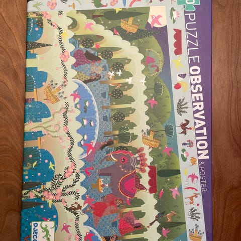 Djeco Birds puslespil med 1000 brikker. Motiv med fugleillustration. Der medfølger plakat af motivet. Færdigt puslespil måler 97 x 33 cm.