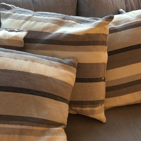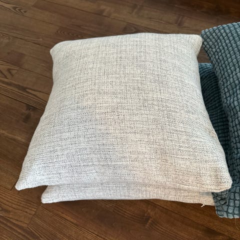 Sæt med en beige pude og yderligere tre betræk der alle måler 50x35 cm. Pudernes betræk har en tekstureret overflade på den ene side og velour på den anden. Betrækket har lynlås, hvilket gør det nemt at fjerne og vaske. Puderne ser komfortable ud og kan bruges som sofa- eller soveværelse dekoration.