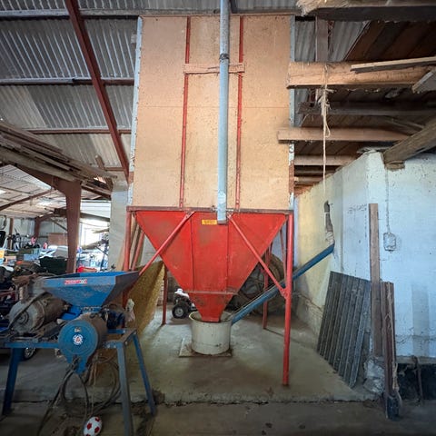 Siloen har korn i de 2 nederste sektioner, sælger vil hjælpe med flytning af korn