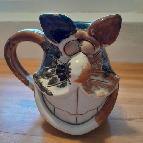 Dette er et keramikkrus med håndtag, som har indgraveret navnet 'Mette'. Kruset er gråt i farven med brunlige nuancer og har en rustik finish. Bunden af kruset har et mærke, der ligner et produktionsstempel. Kruset måler 7x8 cm, hvilket gør det velegnet til brug som en almindelig drikkekop.