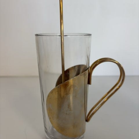 Et solidt vintage kaffemål lavet af metal. Målet har en rund, dyb skål for enden og et ergonomisk håndtag til nem brug. Den har et antikt look og kan bruges til at måle kaffe eller andre tørre ingredienser. Størrelsen af målet er 14,5x3 cm.