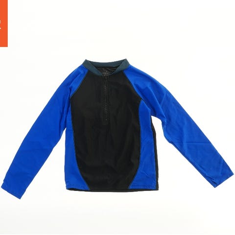 Dette er en orange UV-bluse med korte ærmer og et cirkulært logo på højre arm samt et bølgemotiv på forsiden. Den er designet til at beskytte mod solen og er egnet til vandaktiviteter.