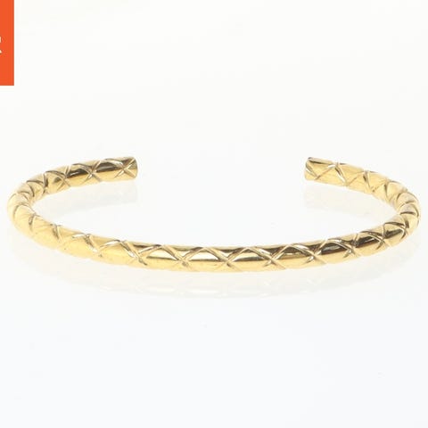 Den viste genstand er et guldkæde armbånd med rektangulære links. Armbåndet er af enkeltdesign med en sikkerhedslukning ved enden, der sikrer nem og sikker fastgørelse. Materialet ser ud til at være guld eller guldaktigt, hvilket giver en flot og elegant glans. Armbåndets omkreds er 10 cm, hvilket gør det egnet til håndled. Det kan let matches med forskellige outfits for et stilfuldt udseende. Tags: armbånd, kæde, guld, smykker