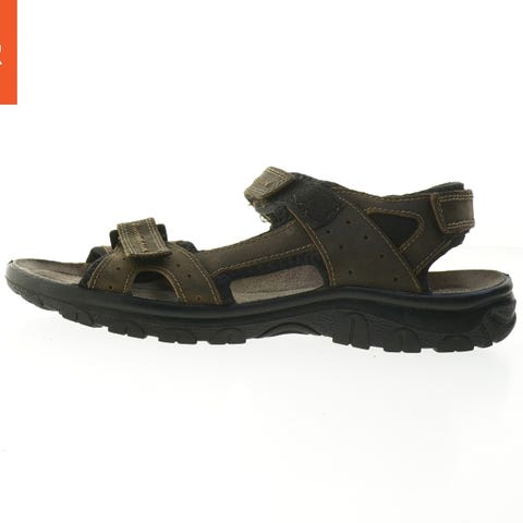 Disse sandaler er størrelse 42 og har en solid sort farvede remme af skind med tykke såler. De har en stilren rem over foden og justerbare remme rundt om anklen for bedre pasform. Sandalerne er designet til både komfort og stil, hvilket gør dem perfekte til både casual og mere formelle lejligheder. Tags: sandaler, fodtøj, unisex, stilfuld.
