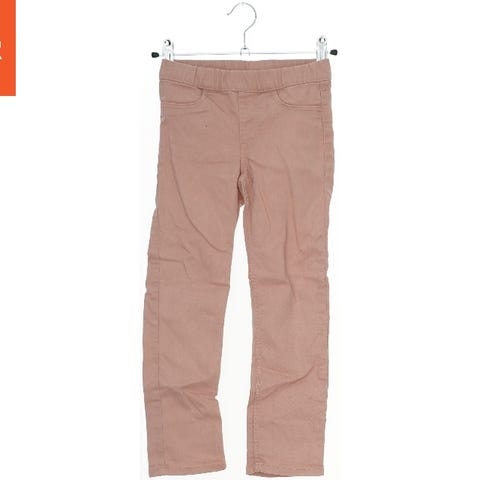 Beige fløjlsbukser. De har en elastisk talje med snøre for justering. Foran er der to lommer, og en enkelt lomme er placeret på bagsiden. Bukserne har en afslappet pasform.