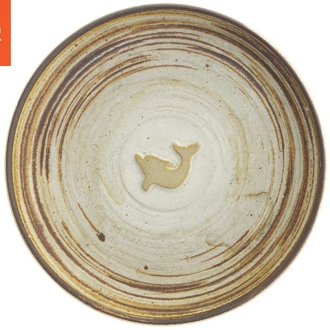 Rund dekoreret keramisk skål med låg L. Hjort (str. Ø 13 cm)