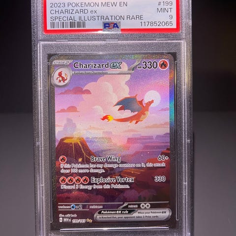 Pokémon Charizard V samlekort fra 2020 i PSA-kapsel. Kortet er fra Sword & Shield-serien og udgaven Champions Path Secret er også åben for bud eller bytte