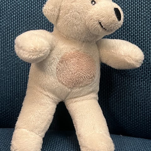 Billedet viser en hvid polar bamse med en størrelse på 32 cm. Bamsen har en blød plys tekstur, en sort næse og sorte detaljerede poter. Den er designet til at ligne en isbjørn og er ideel som et krammedyr til børn eller til dekoration.