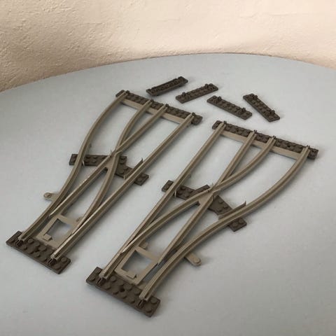 1 venstre + 1 højre skiftespor + 4 buede skinner.