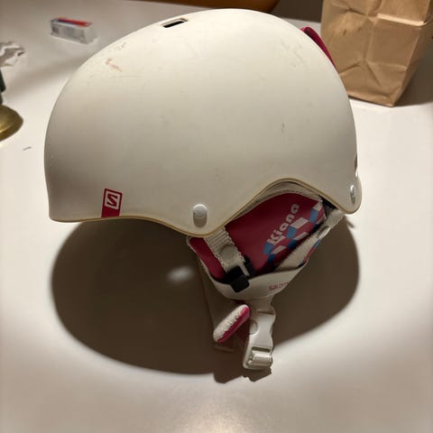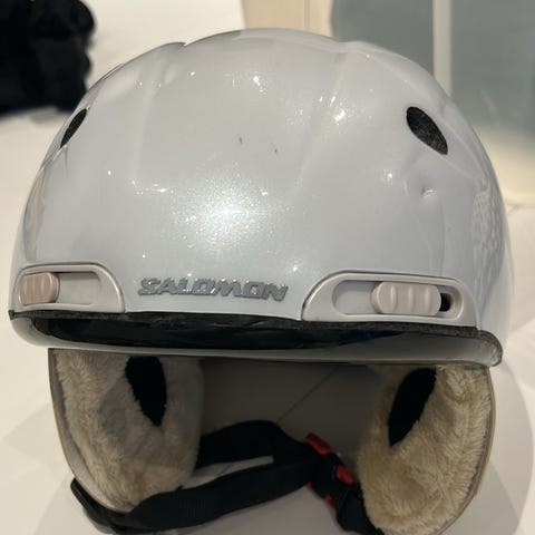 Salomon skihjelm i størrelse XXS./XSHjelmen er sort med hvidt justerbart hageremssystem og ørebeskyttere. Den har ventilationsåbninger i skallen samt holder bagpå til skibrille. Indersiden er polstret for øget komfort. Velegnet til ski og snowboard. Passer til 3-10 år