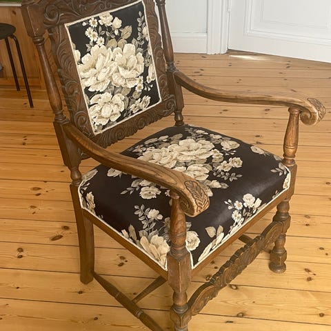 Gammel stol som ikke fejler noget lavet i massiv egetræ.