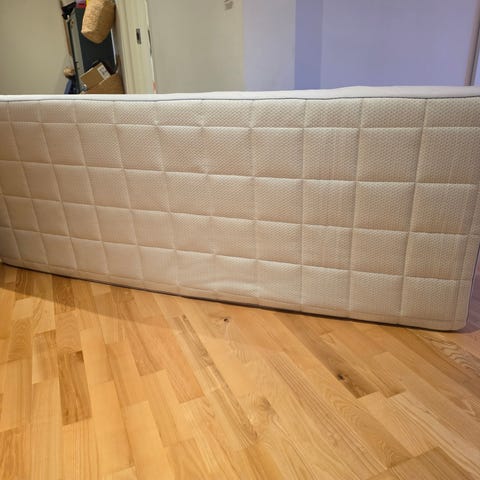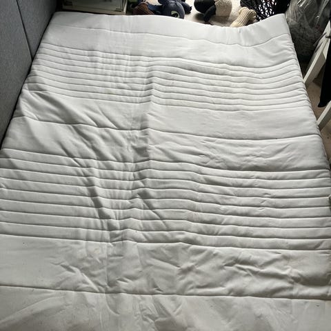 3 mdr gammel topmadresse. Sægles da den er for blød. Har ikke haft nogen uheld😅 mål er 180x 200 cm