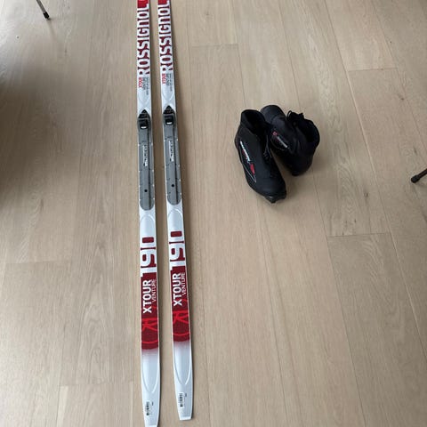Salomon RC7 Skin langrendsski på 180 cm i blå og sort. Skiene er klassiske langrendsski med integreret skins-fælde under sålen, som giver fæste uden brug af klister.
