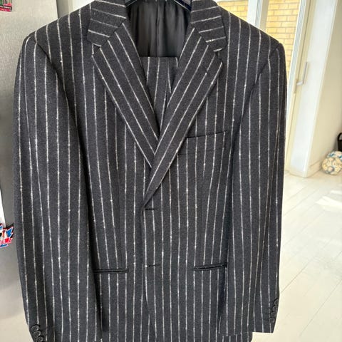 Virkeligt flot jakkesæt - habitjakke og habitbukser, originalt fra Van Gils i str. 50 i en lækker uld kvalitet sælges.