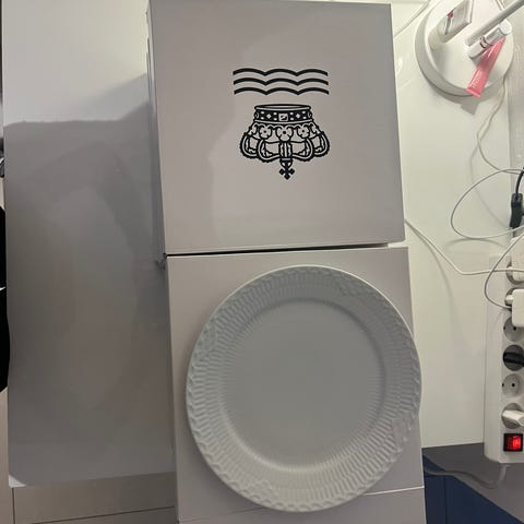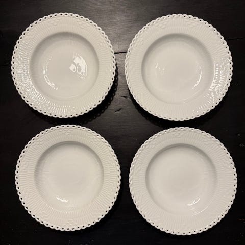 12 stk. dessert/kage tallerkner D: 19 cm, 1. sotering ingen skår eller revner, ikke ryger hjem, sælges 225 kr pr. stk. rabat gives ved køb af alle. Sendes ikke.