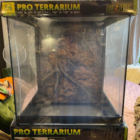 Sælger dette klassiske Exo Terra terrarie. Det er brugt, men fremstår i rigtig god stand. Terrrariet er tømt, grundigt rengjort og desinficeret, så det virker som nyt og er 100% klar til brug. Mål: 90 cm (bredde) x 45 cm (dybde) x 45 cm (højde).