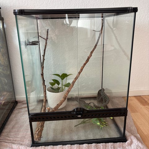 Tilbehør kan tilkøbes: Prisen er for selve terrariet, men jeg har en lampe og diverse andet udstyr liggende. Hvis du mangler noget, kan vi sagtens kigge på det og forhandle en god samlet pris.