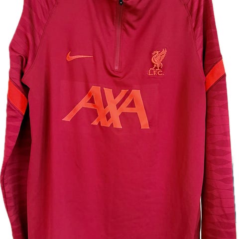 Trøjen er i en flot råhvid farve med de ikoniske mørkegrønne og røde detaljer på kraven. Det var i denne sæson, Liverpool løftede både FA Cup og Carabao Cup trofæerne!