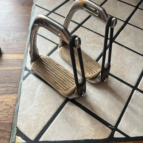 Fine gamle stigbøjler og bid,- to af hver sælges samlet. Trænger til oppudsning.