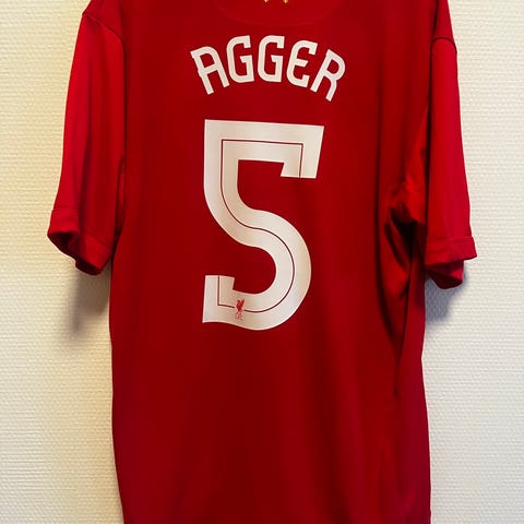 Liverpool rød hjemmebanetrøje, Warrior, str. Large, Velholdt Liverpool hjemmebane trøje fra 2013. Året hvor Liverpool blev nummer 2 i Premier League og dengang Agger spillede på holdet. Trøjen er købt på Anfield Liverpools hjemmebane.