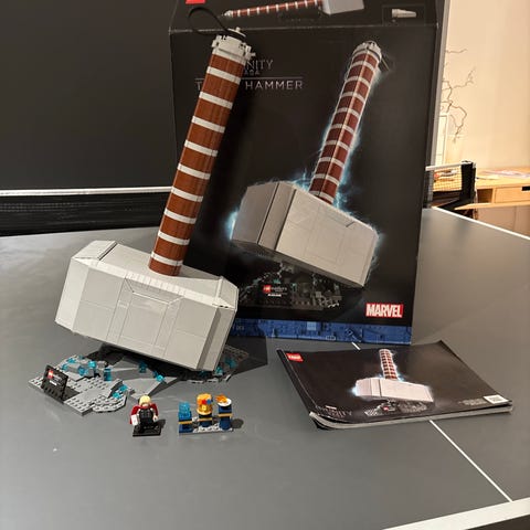 Sælger dette udgåede Lego sæt, som har stået til pynt i nogle år nu, men skal hellere videre til én som får glæde af at bygge den og have den stående. Indeholder 979 dele og er fed at have i hænderne, når den er bygget, da den er tæt på 1:1 forhold og har god vægt til sig. Så er man stor Thor fan, så er der chancen for at fedt bygge og udstillingssæt her.