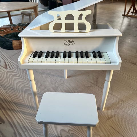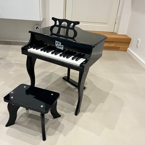 Small foot børneflygel i sort. Klaveret har tangenter som et lille keyboard og leveres med matchende sort skammel. Egnet til mindre børn til leg og introduktion til musik og klaverspil. Fremstillet i robust materiale med blank overflade og nodestativ på toppen.