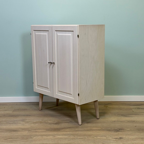 Flot skab i fyrretræ med skuffer. Behandlet i hvid lud. Flere af samme model og type haves. Også som reol og vitrineskab. Vi har ben i forskellige længder. Pris og mål pr. Stk.