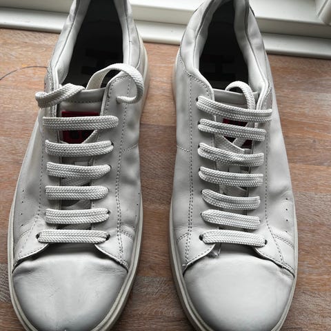 Hugo Boss sneakers i størrelse 42. Modellen er i hvid med stribedetaljer i siden. Overdelen fremstår i tekstil og syntetisk materiale med snørelukning. Flad gummisål egnet til hverdagsbrug.