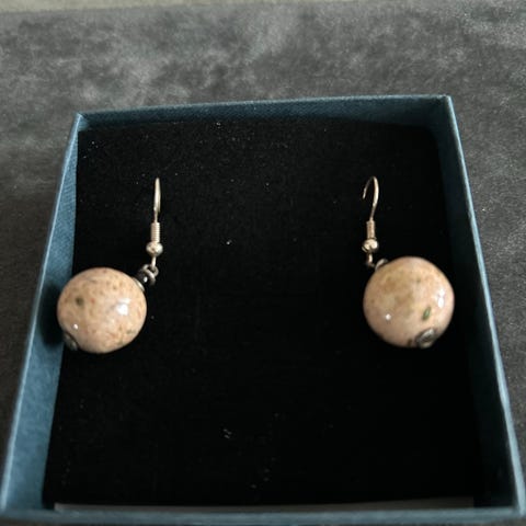 Kazuri ørehænger i ler - - som er med bøjle - og lavet i Afrika af afrikanske kvinder - Ca 10 mm - Kan sendes for 47 kr