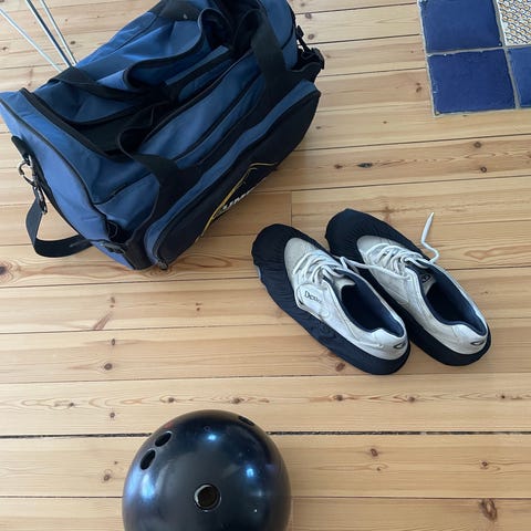 Ebonite Tornado bowlingkugle i rød/sort marmoreret design. Kuglen har borede fingerhuller og er egnet til bowling på almindelige baner. Leveres sammen med en Circle bowlingtaske, som har skulderrem og håndtag til transport og opbevaring. På billederne ses desuden et par bowling sko, som kan indgå i sættet, hvis størrelse og detaljer aftales nærmere.