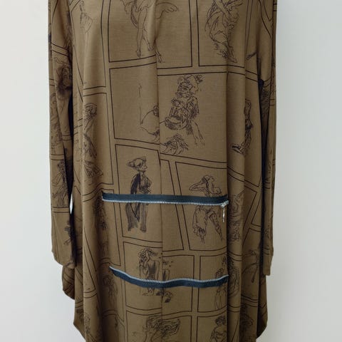 Bryst vidde 116 cm, for og bag stykket målt ved bryst linjen.