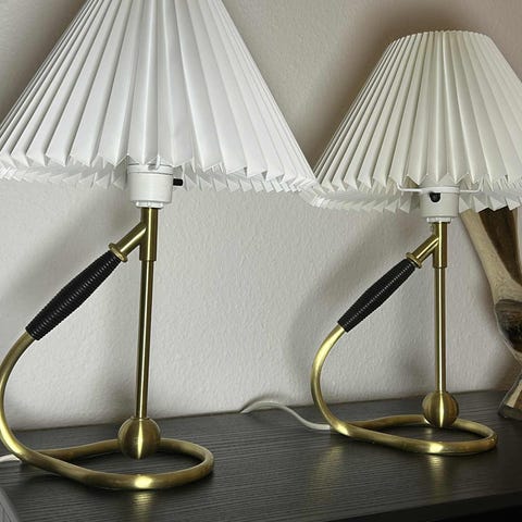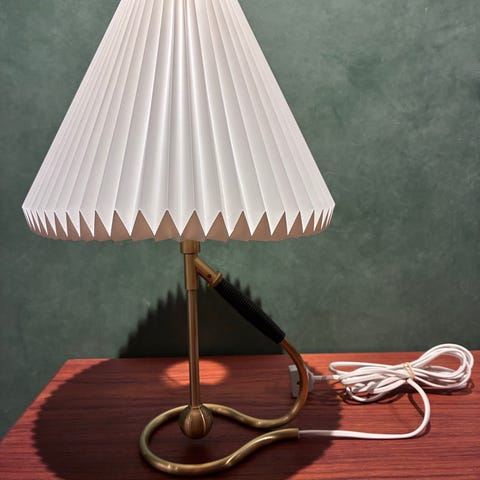 Gammel Le Klint lampe model 306, designet af Kaare Klint i 1945. Lampen har kipfunktion, så den kan både bruges som bord- og væglampe. Lampen sælges med original Le Klint skærm som har brugsspor.