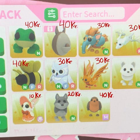 Roblox Adopt Me digitale kæledyr = Alt til sammen er 1000 kr