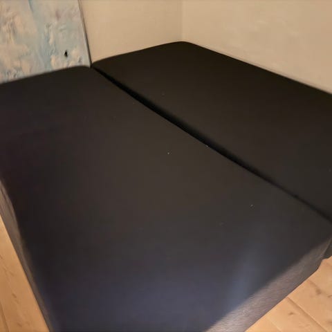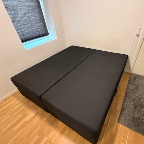 Jysk Dreamzone seng i mørkt betræk. Sengen består af to enkelte senge placeret ved siden af hinanden, som tilsammen danner en dobbeltseng. Overmadrassen er lys og dækker hele liggefladen. Serien Dreamzone er en sengekollektion fra Jysk, beregnet til almindelig brug i soveværelse. Velegnet til voksne eller som familieseng afhængigt af størrelse og opstilling. Yderstof og materialer fremstår i neutrale farver, som passer ind i de fleste indretninger.