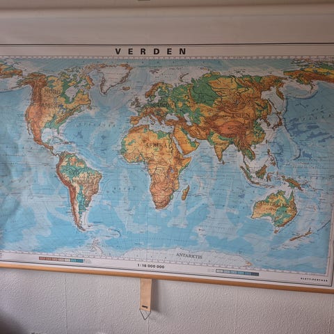 Verdenskort/skolekort/vægkort med hele verden