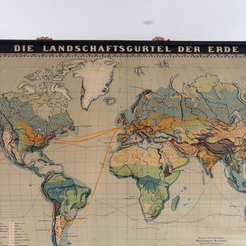 Cool retro skolekort / verdenskort - flot og hyggeligt i boligen. Flot stand alderen taget i betragtning. Ophængsbeslag medfølger. 230 x 140 cm