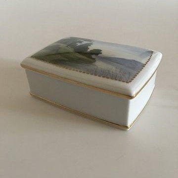 Rosenthal porcelænsskål med låg i hvidt porcelæn. Skålen har bred gulddekoration med mønster langs kanten og på lågknoppen samt en krans af farvede blomster på lågets midte. Velegnet som serveringsskål eller til opbevaring på bord eller i vitrineskab. Stemplet på undersiden med Rosenthal Bahnhof Selb Germany.