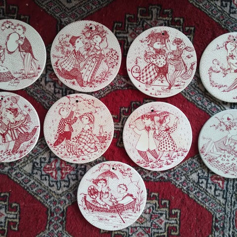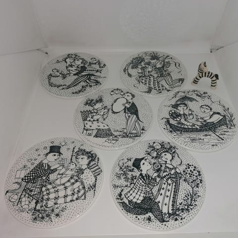 8 stk sort / hvide bjørn wiinblad platter.
