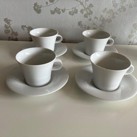 Elegant. Exceptionel enkel stilren lækker kvalitetsserie. Trompetform V-form Y-form termokrus form. Offwhite, Creme, Elfenben